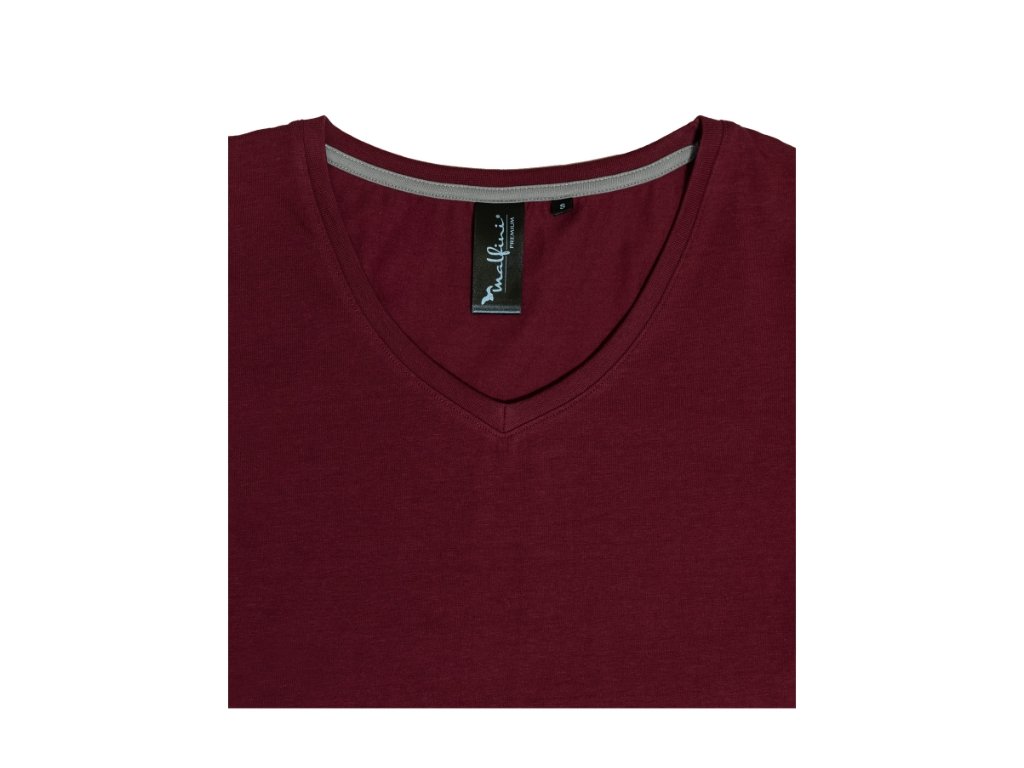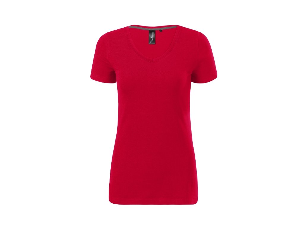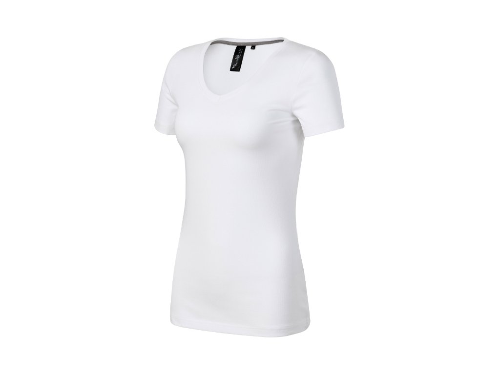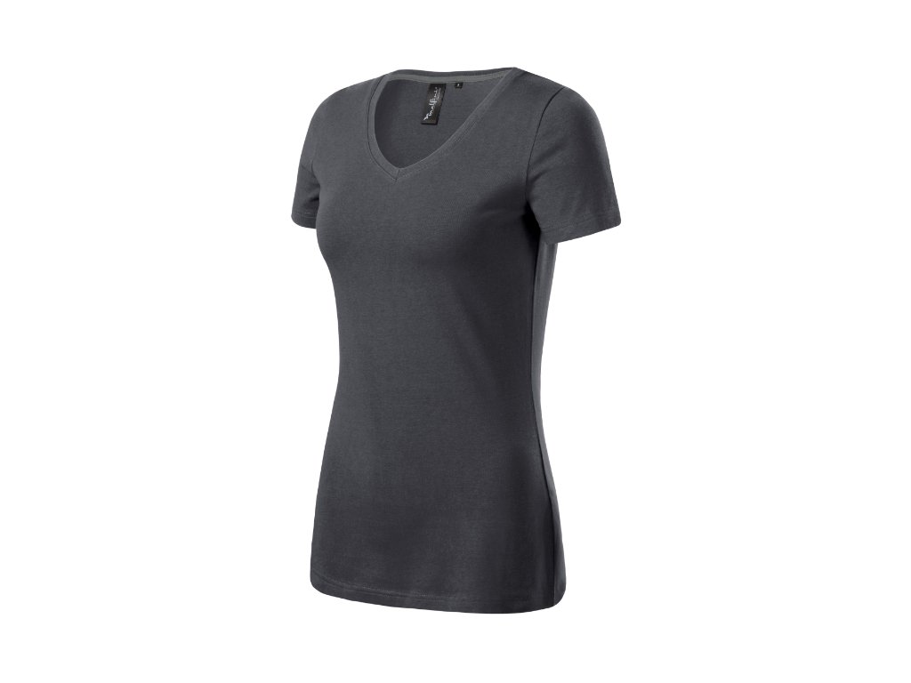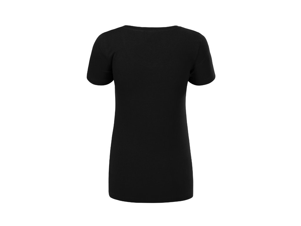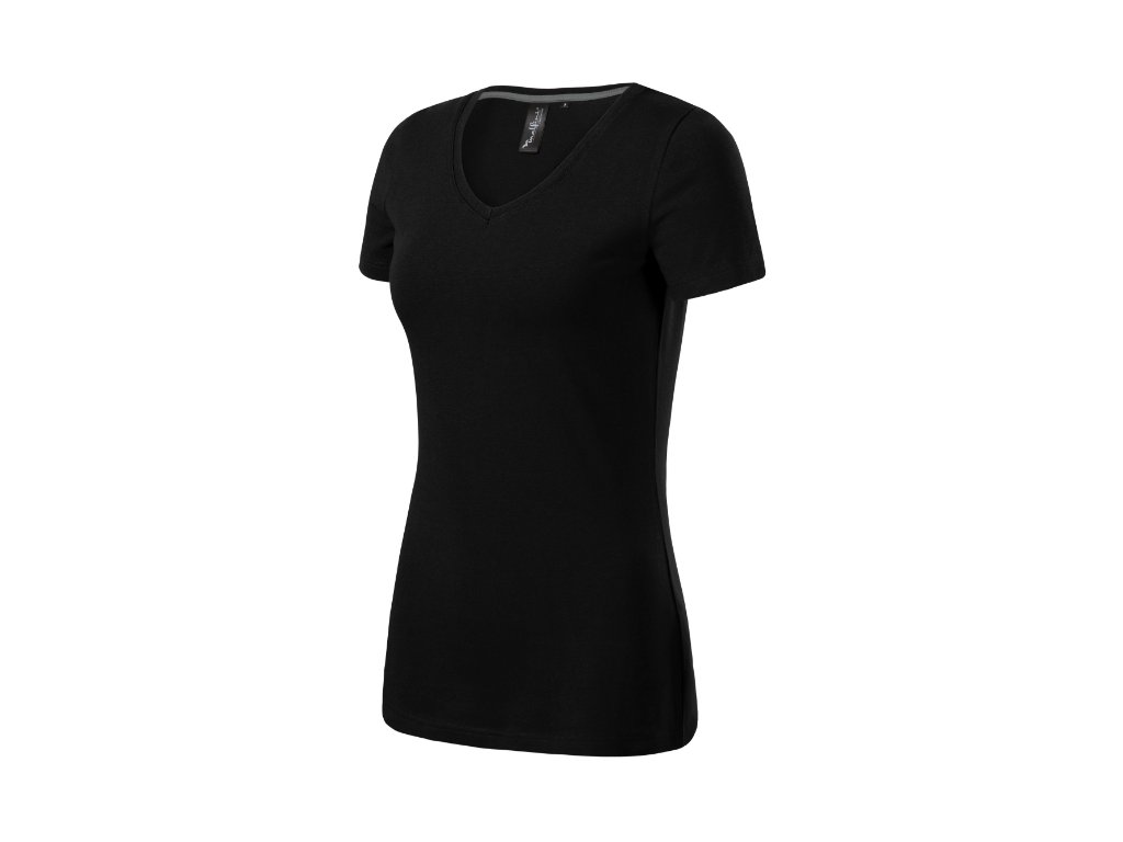 strečový materiál udržiavajúci stálosť tvaru priliehavý strih s bočnými švami prehĺbený výstrih v tvare V úzky lem priekrčníka z rebrového úpletu 1:1 s 5 % elastanu vnútorná časť priekrčníka začistená kontrastnou páskou spevnenie ramenných švov páskou krátke priliehavé rukávyDodatočné parametre